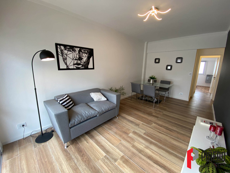 San Luis 2160Excelente semipiso de 2 ambientes amplios luminosos a la calle, con dormitorio contrafrente con balcón, baño de servicio y baño completo con ducha, Amplio living comedor con cocina con barra desayunadora. Posee calefacción con caldera individual por losa radiante. Pisos de madera hidrolaqueados en todos los ambientes. Amplios Placares en pasillo y dormitorio. El departamento cuenta con cochera semicubierta